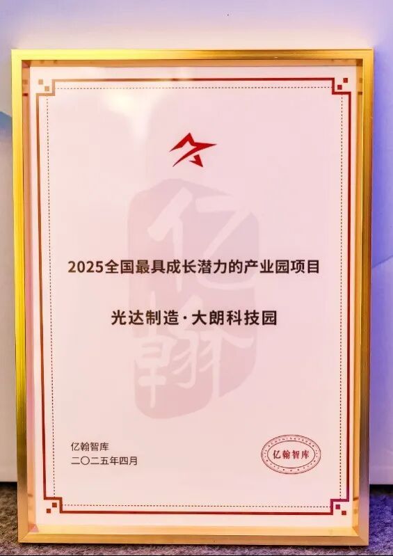 2025年,光大产业集团的实践获得了行业权威机构的高度认可。4月,在上海举办的“2025产业园区未来大会”上,光大产业再度跻身“2025产业园区运营商综合实力50强”。旗下项目更是屡获殊荣:光大We谷园区蝉联“2025区域城市封面价值产业园30强(大湾区)”,光达制造·大朗智慧谷荣获“2025全国智能制造特色产业园项目”,光达制造·大朗科技园获得“2025全国最具成长潜力的产业园项目” 。