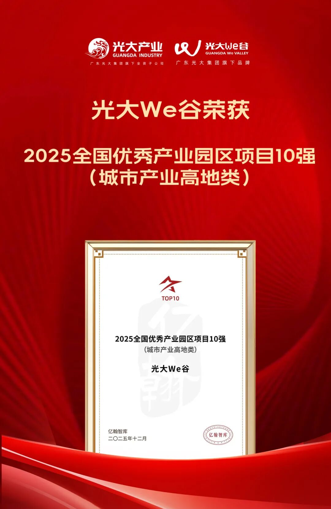 12月,在亿翰智库举办的“2025产业园区创新发展大会”上,光大We谷入选“2025全国优秀产业园区项目10强”(城市产业高地类)。这些荣誉既是对光大We谷过去九年深耕的褒奖,亦是对十周年的献礼。