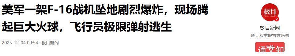 2025-12-04 09:54·极目新闻 美军一架F-16战机坠地剧烈爆炸,现场腾起巨大火球,飞行员极限弹射逃生
