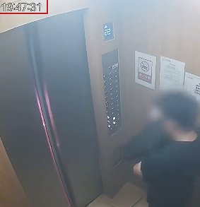 浓烟逐渐沿着门缝涌入电梯轿厢内