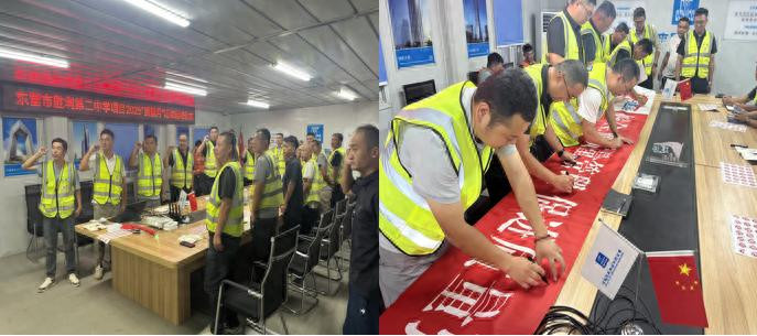 中建二局东营市胜利第二中学改扩建项目积极响应号召鼎信天下,举办2025年“质量月”活动启动仪式,并组织全体人员宣誓、签字。
